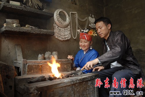 施洞苗族的銀飾工藝美術精湛,歷史久遠,堪稱“無字史書”。其蘊含的文化內涵可折射出一個民族的歷史和變遷,具有極高的文化品味。而這些精美的銀飾品,都出自本土的銀匠師之手,塘龍寨年僅45歲的吳水根,便成了遠近聞名的“老銀匠師”。