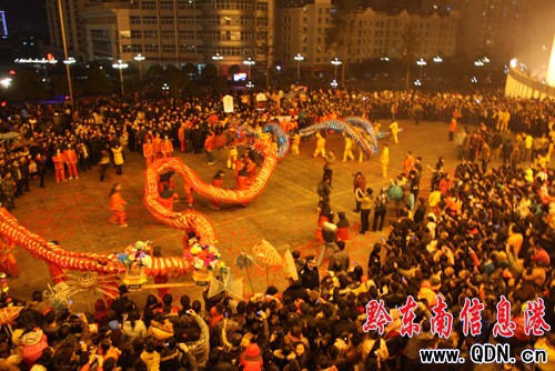 震耳欲壟鑼鼓、五彩繽紛的煙花,龍騰盛世鬧元宵,正月十五,凱里市舉行了“龍騰凱里”舞龍噓花活動。6條龍輪番為市民表演,現場吸引了眾多市民。