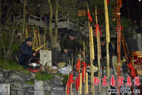 為迎接“大地聯創”2012中國•凱里•甘囊香蘆笙節的到來,2月6日(正月十五)晚21時30分許, 舟溪鎮苗族同胞在甘囊香老蘆笙堂祭祀臺舉行了盛大的“起堂開節”儀。
