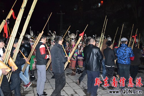 祭祀畢,燃放鞭炮。由由吳氏家族成員吹響2012年第一聲蘆笙,預示節起,其他蘆笙隨后跟著一同吹奏。