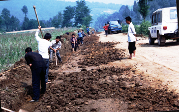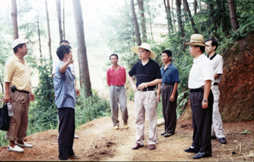 凱里市委常委、常務副市長蔣映生與市委常委、宣傳部長楊蘭田到板溪最后一個未通公路小組大苦組考察公路建設情況。