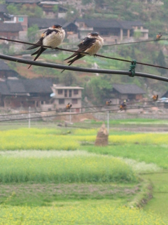 本港訊 (姜秀波) 4月10日,兩只春燕在屋檐下棲息。當日,在苗嶺山鄉(xiāng)――黔東南州凱里舟溪鎮(zhèn)黃金寨,村民們見到成千上萬的春燕突然來訪,或上下翻飛或棲于電線或屋檐下,唧唧喳喳的叫聲逗引村民駐足觀望。當?shù)卮迕穹Q,這樣的景象還是頭次見到。燕群在該該地停留數(shù)小時于傍晚才戀戀不舍地離去。
