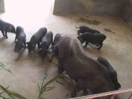 一個母香豬一胎生了10個小豬。瞧!這個驕傲的“香豬媽媽”多神氣!