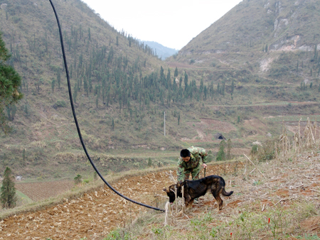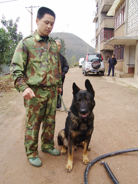據(jù)介紹,6時許,警方接到報案,隨即出動一條警犬開展追捕。罪犯聞訊倉促逃逸,警犬引導民警在山上“順藤摸瓜”,在離作案地點幾百米處,將竊賊抓獲。