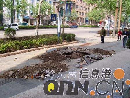 當天上午,記者趕到了事發處,噴出地面的水已經被控制,但原本平整的人行道上出現了個“朝天洞”,約2平方米,洞底是裸露的水管。“朝天洞”周邊堆滿了小水泥板、泥土等雜物。人行道旁邊是工商局辦公樓,大股水正從門道上流出來,弄得大街上濕漉漉的,該大樓三樓、二樓等均遭水淹,辦公桌椅等設備、資料等均已“濕身”。