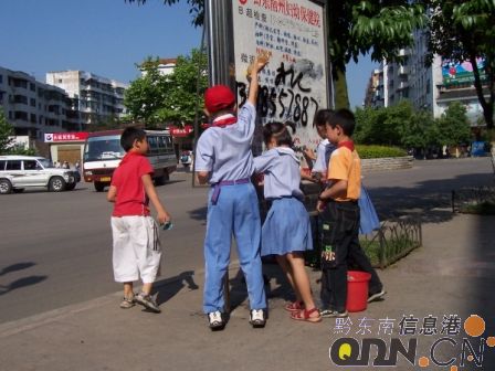 圖片新聞 5月18日下午,凱里城區幾乎每條街道都是凱里各中小學校學生的身影,他們當起了“清潔工人”:有的掃地、撿垃圾,有的鏟除墻上的“牛皮癬”,還有的向市民展開了創建文明衛生環境的宣傳。據介紹,當天,像這樣用行動為城市“洗面”,向“臟亂差”開戰的中小學生有上萬名。此外,凱里市數千干部也走上街頭,為創建文明衛生城市獻力。