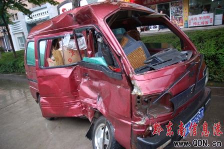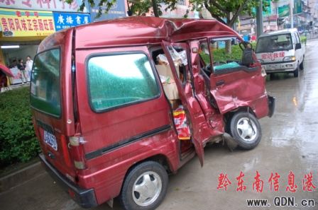 圖片新聞 6月6日清晨7時許,在大雨滂沱中,一輛公交中巴車與一輛微型面包車在凱里北京西路與清平路十字路口發生碰撞,微型車上兩乘客不同程度受傷,處于昏迷狀態。事發后,兩傷者被送往貴醫二附院救治。