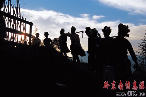 圖:清晨上山做活的人們