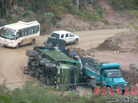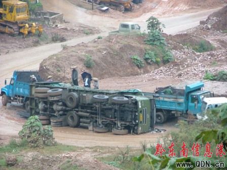 凱里鴨塘一轉(zhuǎn)彎處側(cè)翻12輪30噸大貨