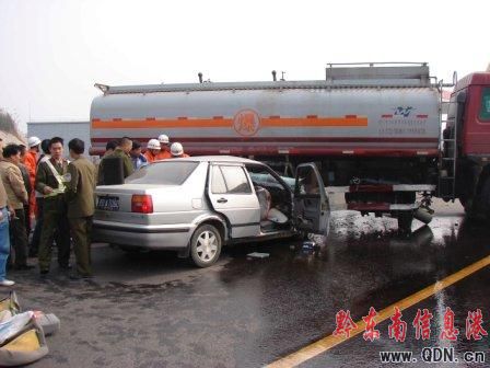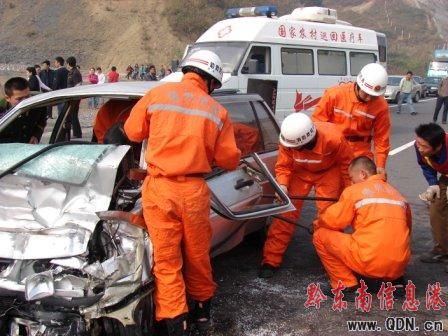 11月11日中午1時許,在玉(屏)三(穗)高速路段距三穗縣收費站約500米處發(fā)生一起交通事故,一輛出租車撞上一輛油罐車,造成出租車上1人當(dāng)場死亡、1人重傷被卡車中。事故還造成油罐車破裂,大量油品流向地面……在此情況下,三穗消防大隊官兵接報警后緊急出動,經(jīng)近一小時的努力,成功將出租車上被困受傷人員營救送往醫(yī)院。(彭志凌 特約記者 張正特)