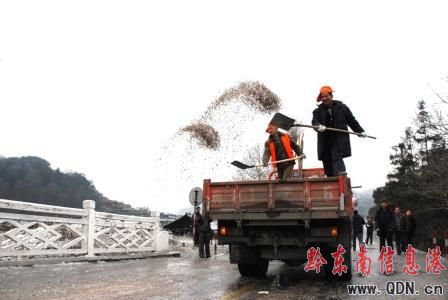 冰雪阻路 320國道上鋪沙保暢通(圖)