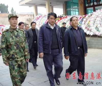 貴州省副省長祿智明在黔東南州委書記廖少華等領導的陪同下步入靈堂