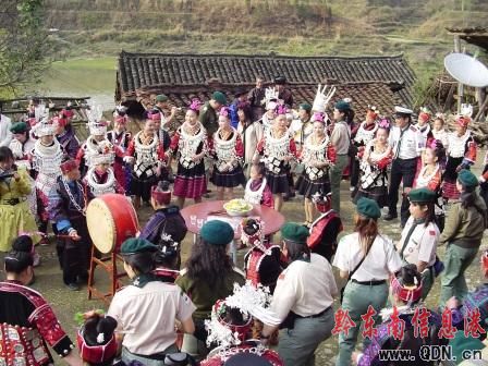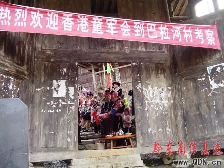 22日,交流團到達巴拉河村,受到巴拉河村民的熱情接待。剛下車,身著苗族盛裝的村民擺起了攔門酒,悠揚的蘆笙,香甜的米酒,古樸的情歌,粗曠的舞蹈,一下子驅散了客人的身上的疲勞.雙方進行簡單的座談后,巴拉河村民同香港客人你一起上演了一場精彩的“香港—大陸”對歌賽, 聞名遐邇的苗族飛歌、熱情奔放的蘆笙舞,纏綿悱惻的情歌贏得客人的陣陣掌聲,香港客人情不自禁走上舞臺,踏著久遠的鼓聲,與當地村民一起舞動。最后,雙方在一首共同的《中國人》中結束了對歌賽。