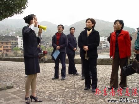 古城導(dǎo)游向州委副書記紀(jì)委書記韓卉等領(lǐng)導(dǎo)介紹古城景點(diǎn)“整臟治亂”工作情況