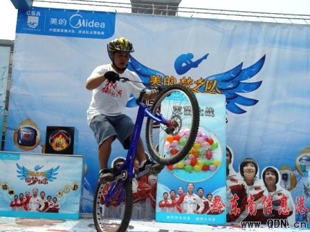 為期兩天的活動舉行花式籃球表演、小輪車表演、義賣等,現場氣氛火熱。“買一件美的電器,為奧運會、紅十字捐贈10分錢!”市民們紛紛現場購買電器,為奧運加油。
