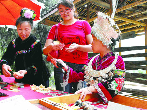 隨著交通條件的改善,到貴州省凱里、雷山等地旅游的國內外游客越來越多。苗族鄉民制作的民族工藝品深受游客喜愛,幫助鄉民脫貧致富,帶動了當地經濟發展。