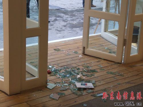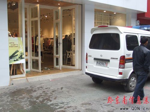 本港訊 (記者 吳勝成) 20日,凱里市中博商業區的某服裝店內,一年輕男子突然闖入,瘋狂地將該店玻璃門及收銀臺砸碎后匆忙逃走。目前,警方正在對這一打砸事件展開調查。 當日下午3點許,記者趕到事發現場時,前來處理的民警剛剛離開。商店門前的地面上還殘留著很多血跡和被砸碎的玻璃,商店的員工,被嚇得臉色蒼白。該店一員工稱,鬧事男子一進店就砸外面的玻璃門,并將兩道玻璃門砸破,隨后,該男子瘋狂的又將收銀柜臺砸碎。據店員稱,店鋪遭打砸與一家物流公司員工有關。 據附近店員稱,當時人來人往的,大家都在做生意,突然就聽見噼里啪啦一陣響聲,過來一看,該店已經被砸了,來砸店的男子由于手受傷爾后跑離現場。