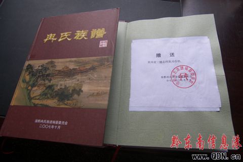 本港訊 近日,三穗縣民政局退休干部冉儒鈞同志向三穗縣檔案館捐贈本人參加編寫成書的《冉氏族譜》一部。該族譜共分上、下兩冊,凈重4公斤,200多萬字。