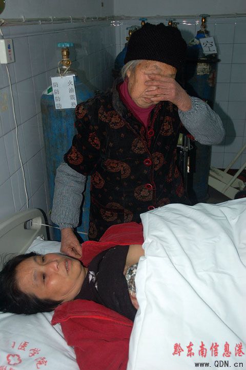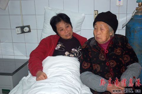 然而,3年前,這個(gè)雖然貧窮但是很幸福的家庭卻遭遇了磨難。2005年,殘疾的陸大蘭被查出患有乳腺癌,由于無錢治療,陸只得到小診所里切除了包塊,每個(gè)月靠親戚朋友資助買些消炎藥和止痛藥熬過病痛。由于病情的不斷惡化,隨后,陸大蘭的右邊乳房已經(jīng)大面積潰爛,并長了很多小包塊,導(dǎo)致其行走困難。陸大蘭已經(jīng)沒有能力照顧高聲美老人,反過來,身體還挺硬朗的高聲美老人每天都來照料著陸大蘭�?吹疥懘筇m這般境地,愛莫能助的老人只得每天偷偷躲在墻角抹淚�!叭绻赡�,我愿意拿我這條老命去換她,她是個(gè)好人��!”高聲美老人哽咽著說。