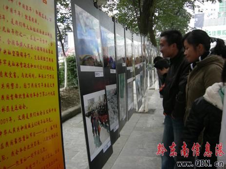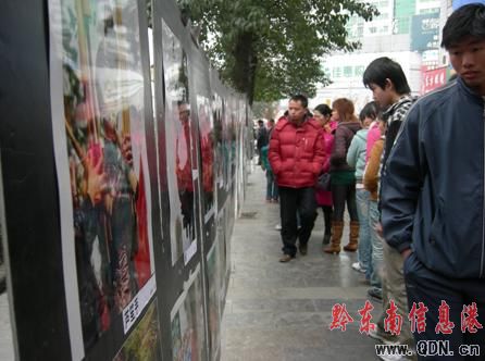 本港訊 1月1日,為增加節日氣氛,黔東南老年攝影學會在凱里大十字舉辦迎春影展。具有濃厚的民族氣息的圖片,吸引不少市民前來觀賞。(楊懿 攝影報道)