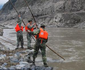 官兵用竹竿就近搜尋