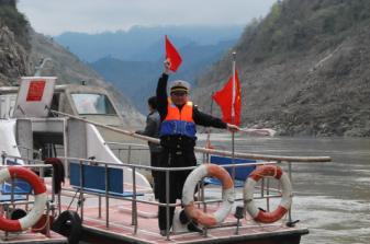 上了客船后,開(kāi)始一切正常。王進(jìn)英抱著堂哥王發(fā)紅的女兒,面對(duì)堂哥坐著,不時(shí)地逗孩子開(kāi)心取樂(lè)。客船駛進(jìn)了九龍灘后,王發(fā)紅感覺(jué)到船只突然劇烈晃動(dòng),繼而水就到了自己的胸口,他大驚,慌忙伸手去抱自己的孩子和堂妹。可是落空了,雙手合攏在一處時(shí),什么也沒(méi)有抱住。