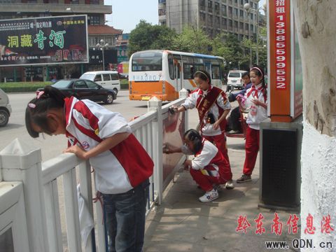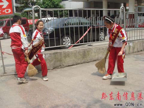 本港訊 (實習記者 劉仙)昨日,記者在韶山南路看見許多學生在街邊掃地、擦護欄、清理一些非法張貼的廣告。據了解,這些學生來自四小、金井小學等學校,學校組織學生出來打掃衛生,是為了配合凱里市近期開展的整臟治亂工作,活動旨在建設文明凱里,培養學生的吃苦耐勞精神,以促進學生全面發展。