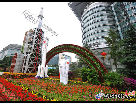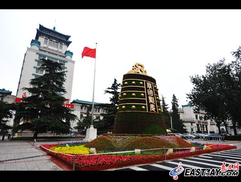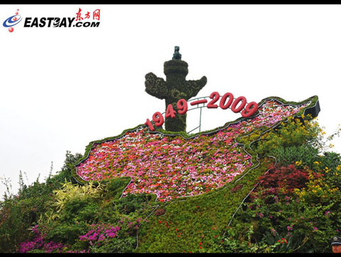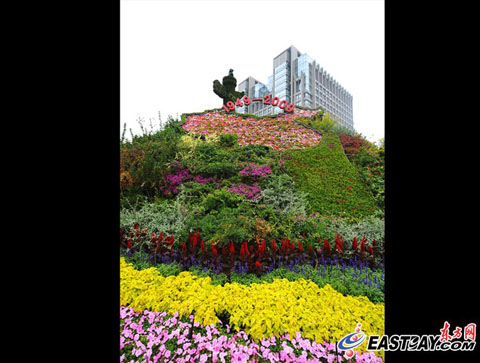 2009年9月18日,國慶將近,各類主題的花壇扮靚長安街。據悉,此次國慶60周年北京各類花卉景觀布置將達到4000萬盆。其中,天安門廣場將在十一期間設置一組中心花壇,長安街沿線步道將布置22處立體花壇,面積達十萬余平米。