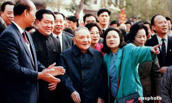 1992年1月18日—2月21日,鄧小平先后赴武昌、深圳、珠海和上海視察,沿途發表了重要談話。鄧小平談話的中心是:堅定不移地貫徹執行黨的“一個中心、兩個基本點”的基本路線,堅持走有中國特色的社會主義道路,抓住當前有利時機,加快改革開放的步伐,集中精力把經濟建設搞上去。談話要點是: