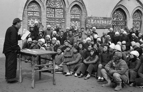1953年,山西省黎城縣仵橋村全村群眾大會(huì)上,原玉魁區(qū)長(zhǎng)向群眾講解婚姻法的政策。