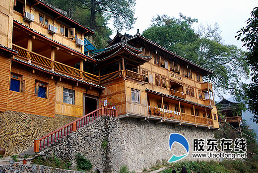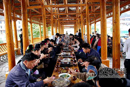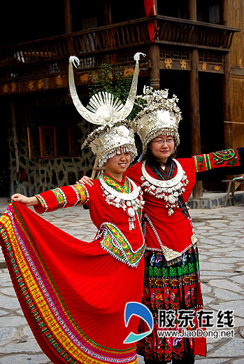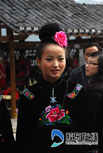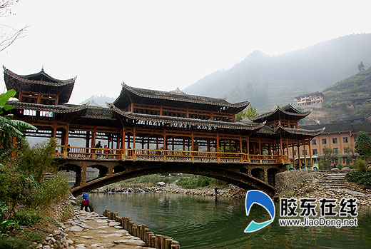 苗寨果然是名不虛傳,領教了姑娘們的熱情,第二天一早昨夜籠在夜色里的苗寨已全然在記者們的視線之內。放眼望去,整個苗寨依山而建,吊腳樓層層疊疊,順著山勢向上爬,直至第一梯度的山頂。整個苗寨建在兩山之間,一條靜靜流淌著的白水河穿寨而過,將苗寨一分為二,幾座風雨橋悠閑地倚在河上。河水碧綠,這在沿海省份是不多見的。在導游的帶領下,大家沿著山腳的臺階拾級而上,穿行于吊腳樓之間。據了解,現在不少這樣的居民吊腳樓都已得到開發,可提供旅游住宿,讓游客最真實地體驗苗家生活。當地隨行的宣傳部門的領導介紹說,吊腳樓是木建筑結構的,建設非常不易,每座樓的建設純粹依山取勢,要在狹小的空間里獲得最大限度的生存和居住空間,所以吊腳樓一般都是有一部分是懸空的。看起來雖然危險,但是卻非常的結實。這讓我們非常嘆服苗家人那種征服大山的勇氣,也正是這種勇氣,再加上苗人的智慧,使得他們的祖先雖然幾經遷徙,卻仍然保持了獨特的苗人文化,堅強不息地代代生存傳承了下來。在山頂的觀景臺,俯瞰整個苗寨,才明白了余秋雨那句話的份量:……生生死死爭著往前走,終于走到的一個美麗的終點。這里可以說是一個世外桃源,我們在來的時候,是經歷了近一個小時的車程,在荒無人煙的大山小道上幾經曲折才來到這美麗的所在。