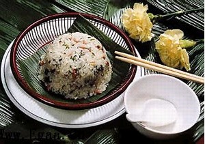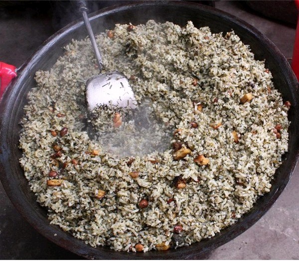 特點:將糯米、粘米拌蒿菜嫩葉、花生、豆腐、臘肉等蒸熟即成社飯,其乃鎮遠、三穗、臺江、劍河等縣立春后第五個“戊”日,家家必備的祭祖食品,為地道的黔東南特色美食。