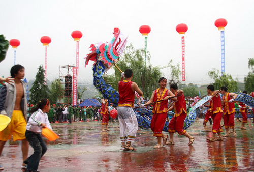 而今,國泰民安,人民豐衣足食,玩水龍已不再是為了祭祀求雨,而成了當(dāng)?shù)氐臐娝駳g活動。