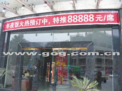 春節臨近,不少酒樓飯店都推出了預訂年夜飯的服務。紅花崗區一家酒樓最近打出了預訂年夜飯的廣告,其中,一桌標價88888元的年夜飯堪稱天價。