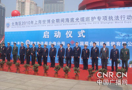 中廣網(wǎng)消息 16日上午,國家海洋局北海分局、中國海監(jiān)北海總隊(duì)與中國聯(lián)合網(wǎng)絡(luò)通信有限公司青島市分公司在青島市五四廣場舉行北海區(qū)2010年上海世博會(huì)期間海底光纜巡護(hù)專項(xiàng)執(zhí)法行動(dòng)啟動(dòng)儀式,標(biāo)志著北海區(qū)2010年上海世博會(huì)期間海底光纜巡護(hù)專項(xiàng)執(zhí)法行動(dòng)正式啟動(dòng)。