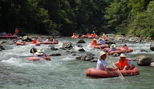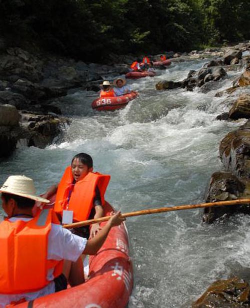 翁密河漂流是臺江縣剛推出的又一極富魅力的項目。它位于雷公山北麓,地處臺江縣南宮森林公園內,距縣城28公里,整個翁密河流域被原始森林覆蓋,河水清澈見底,起漂點是優美的交密村古苗寨,終點是南宮鄉政府所在地,翁密河河水水質潔凈,急流之處落差不大,有驚無險,是漂流的良好寶地。漂流河段全長約8公里,漂流時間約2小時。