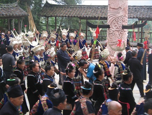 依山傍水的苗家吊腳樓、美麗大方的苗族少女、悠揚(yáng)的蘆笙舞曲…南花苗寨的原生態(tài)苗族文化,讓前來(lái)尋覓探幽的游客興致盎然。南花苗寨的女子多穿長(zhǎng)裙,被稱作"長(zhǎng)裙苗",最長(zhǎng)的百褶裙長(zhǎng)達(dá)80厘米。節(jié)日時(shí)的牛角銀飾是另一個(gè)特色,"大牛角"長(zhǎng)達(dá)1米左右。