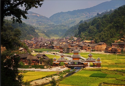 肇興侗寨位于肇興鄉政府駐地,位于縣城東南部,距縣城68公里。地處地處河谷溪畔坡,由三個行政村組成,1012戶,4146人,均為侗族,耕地面積2026畝。主產水稻、油菜、油茶,特產大蒜、棉花、花生等,2010年人均收入2173元。
