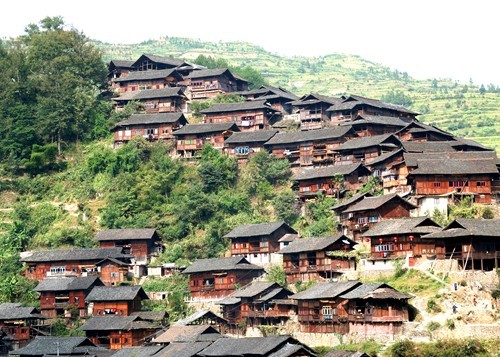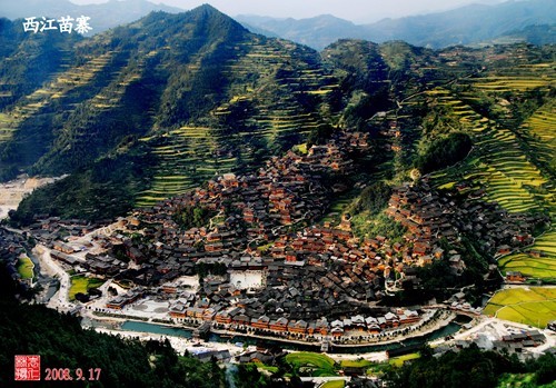 世界上的苗族人數中國最多,世界上的苗寨西江最大。西江苗寨位于雷山縣東北部,背靠雷公坪,面臨白水河,山環水繞,怡靜清幽,距省城貴陽227公里,距黔東南苗族侗族自治州首府凱里34公里,距雷山縣城36公里。西江苗寨由平寨、東引、也通、羊排、副提、南貴、也薅、烏嗄、烏仰、兩岔河、皆王、掌卡等12個自然村寨組成,現有1251戶4758人,其中,苗族人口占總人口的99.5%,因此被稱之為“千戶苗寨”。全寨有李、宋、楊、蔣、陳、唐、龍、毛、王、陸、梁、董、顧、吳等姓氏。