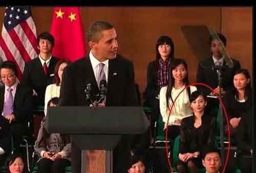 奧巴馬總統(tǒng)在上海發(fā)表演講時(shí),坐在他身后的一位黑衣美女吸引了網(wǎng)友甚至是外國媒體的關(guān)注。她是誰?為什么她和其他的中國學(xué)生那么不同?長得還有點(diǎn)楊瀾的味道?這位美女迅速在網(wǎng)絡(luò)上走紅,美女身份之謎甚至引發(fā)了網(wǎng)友的大討論。(11月21日人民網(wǎng))