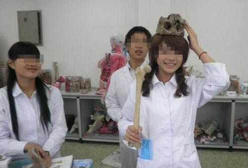 近日,一則《重慶醫科大驚現“玩尸女”》的帖子迅速在各大論壇引起轟動,帖子中一些學生模樣的人,在實驗室中把玩著許多人體骨骼,并擺出各種POSS以這些遺骨拍照。該貼一出,立刻引起討伐聲一片,網友們紛紛譴責照片中學生的行為,認為這是在褻瀆死者。一時間“玩尸女”們被推倒了風口浪尖。