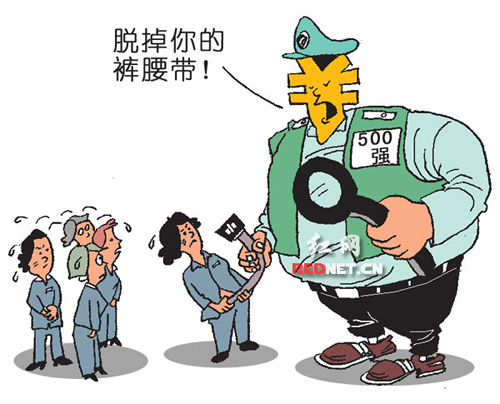 “8000位打工妹,是誰在光天化日之下脫去你的褲腰帶?”近日,名為“契約工”的網(wǎng)友發(fā)帖報料:作為世界500強的廣達集團下屬達富電腦(常熟)有限公司對待員工極其苛刻,進廠時要將手機等電子產(chǎn)品交給保衛(wèi)處保管,下班時居然還要工人在眾目睽睽下解開褲腰帶接受安檢,讓女工備感羞辱。(12月23日《南方日報》)
