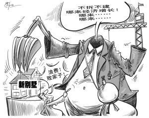 湖北武漢馬湖新村小區400多套入住不足5年的聯排別墅面臨整體拆除,引起業主不滿,紛紛表示“經不起折騰”。而當地街道辦事處稱,土地有限,將建高樓安置更多村民,縱觀馬湖新村小區建設的前后,說不上是浪費資源。(3月16日《京華時報》)