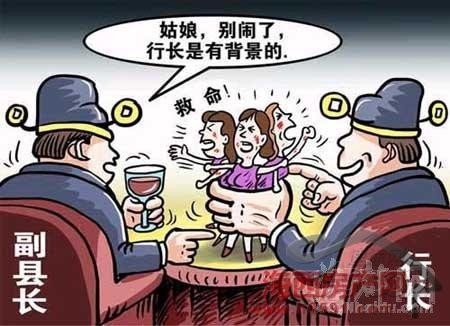 人民網一個名為《行長酒后猥褻暴打女子,副縣長袖手旁觀當看客》的帖子格外引人關注:3月25日晚,河南固始縣某企業老板宴請中國銀行固始縣支行行長閔某和固始縣副縣長張某。閔某酒后在茶樓內猥褻同行的3名女子,遭到對方強烈反對后,閔某“惱羞成怒,一把將其中一名女子陳某按倒在地,狠抓其胸部和下身,并揪住頭發多次將其頭部撞地”。副縣長張某一直袖手旁觀。當陳某跪在地上懇請副縣長為其主持公道時,副縣長卻不無冷漠地在她耳邊說“姑娘,別鬧了,閔行長是有背景的”,說完便揚長而去。(4月9日《環球時報》)