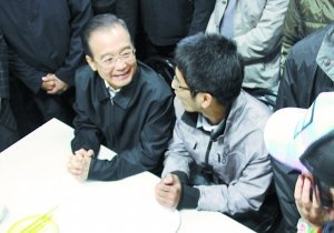 圖為在北航學生食堂,溫總理與大學生拉家常。北航供圖