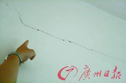 《廣州日報》消息 “住在這樣四處都是裂紋的房子中,讓人心驚膽戰!”昨天上午,三水大塘鎮蓮塘街數十戶居民向本報反映,自從臨街的“千萬富豪”楊某準備動工建房后,周邊居民一刻也沒有安寧,原因是楊某的房屋在進行地基基礎工程時,導致相鄰的36戶居民樓相繼出現大小不一的裂紋,住戶擔心樓房出現安全隱患。