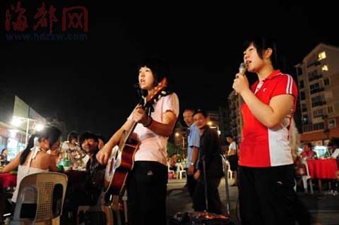 東方網消息 每天晚上6點多,婷婷和貝貝(均為化名)背著一把吉他,拖著一個音箱,從住處打的來到金山大排檔,開始了一天的工作。