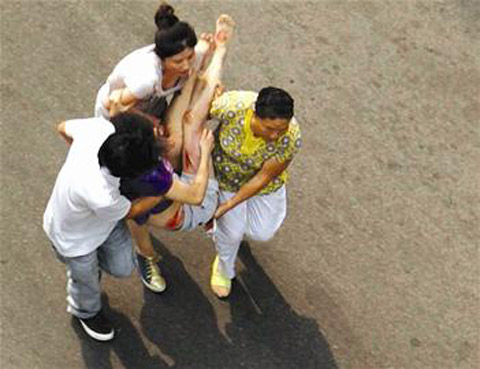 十余名菜販營救被肇事車撞倒母女(組圖)