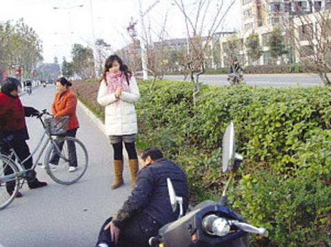 揚(yáng)子晚報(bào)消息 幾天前,一騎電動(dòng)車的男子突然栽倒在鎮(zhèn)江市中山北路的路邊綠化帶中,當(dāng)時(shí)沒(méi)有人伸援手。一名身穿白色羽絨服的年輕女孩經(jīng)過(guò),立即撥打120和110,并一直守候在其身旁,一直等到救護(hù)車將傷者救走。女孩的看護(hù)報(bào)警救人,被網(wǎng)友“西門三炮子”拍下并上傳到鎮(zhèn)江熱門論壇上,女孩翹首等待救護(hù)車的眼光感動(dòng)了太多的網(wǎng)友。4萬(wàn)余名鎮(zhèn)江網(wǎng)友瀏覽后感動(dòng)、贊嘆不已,“善良的女孩最美麗,”他們紛紛追問(wèn)這名“好姑娘”的真實(shí)身份。