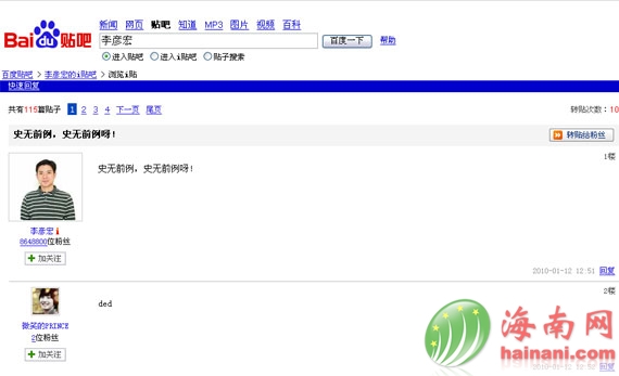 海南網訊 1月12日中午消息,百度今天早上7點左右起部分地區出現訪問故障,李彥宏在其百度i貼吧里發帖子稱此事“史無前例,史無前例呀!”。